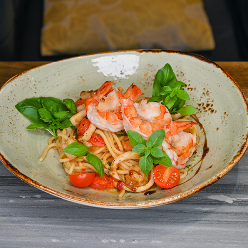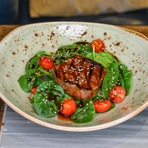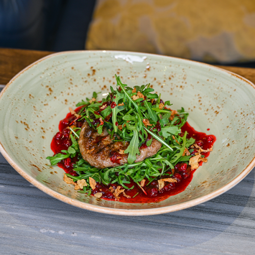 Это блюдо представляет собой лепешку-пиццу, выполненную в итальянском стиле. C ломтиками ароматного бекона, сыр моцарелла, свежие яйца, сливочный соус Альфредо и соус песто. Все вместе создает гармоничное сочетание вкусов и текстур, которое порадует любителей сытных блюд с ярким вкусом.